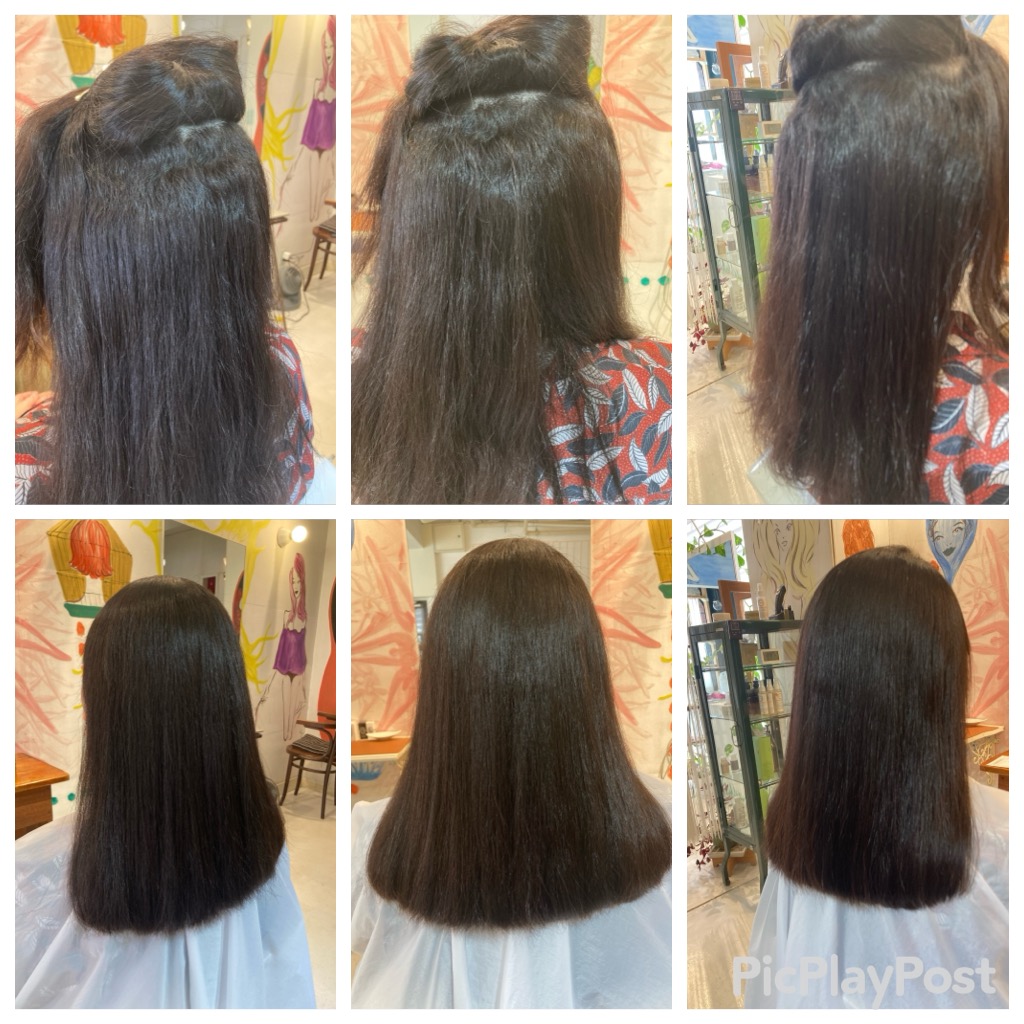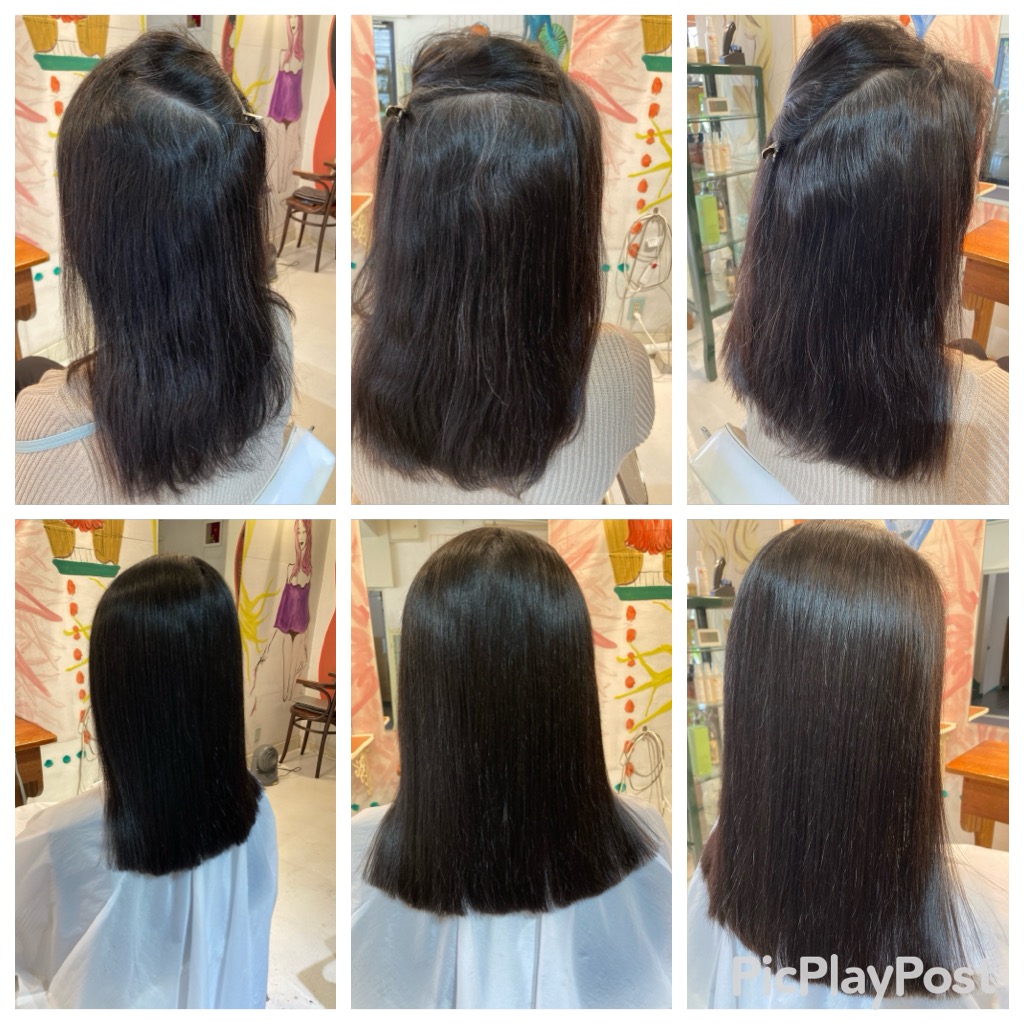 注意2=毛先のダメージ部分(すでにカラーや縮毛矯正など、薬剤が使用されている履歴がある方)は個人差があるため、仕上がりの保証ができませんが最善を尽くさせて頂きます。