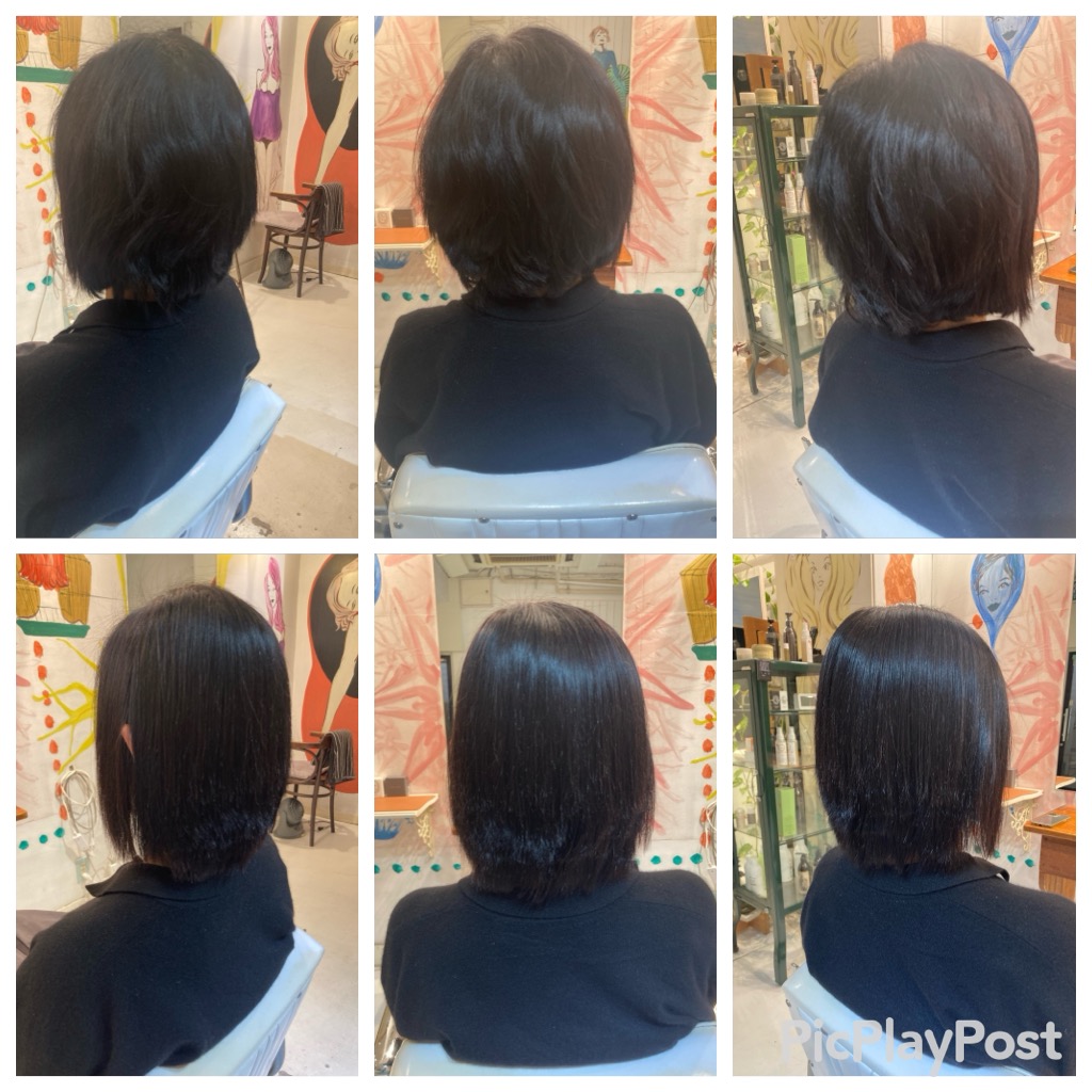 - 美容室では綺麗に仕上がりますが、自分で乾かすとクセが残っています、、、。