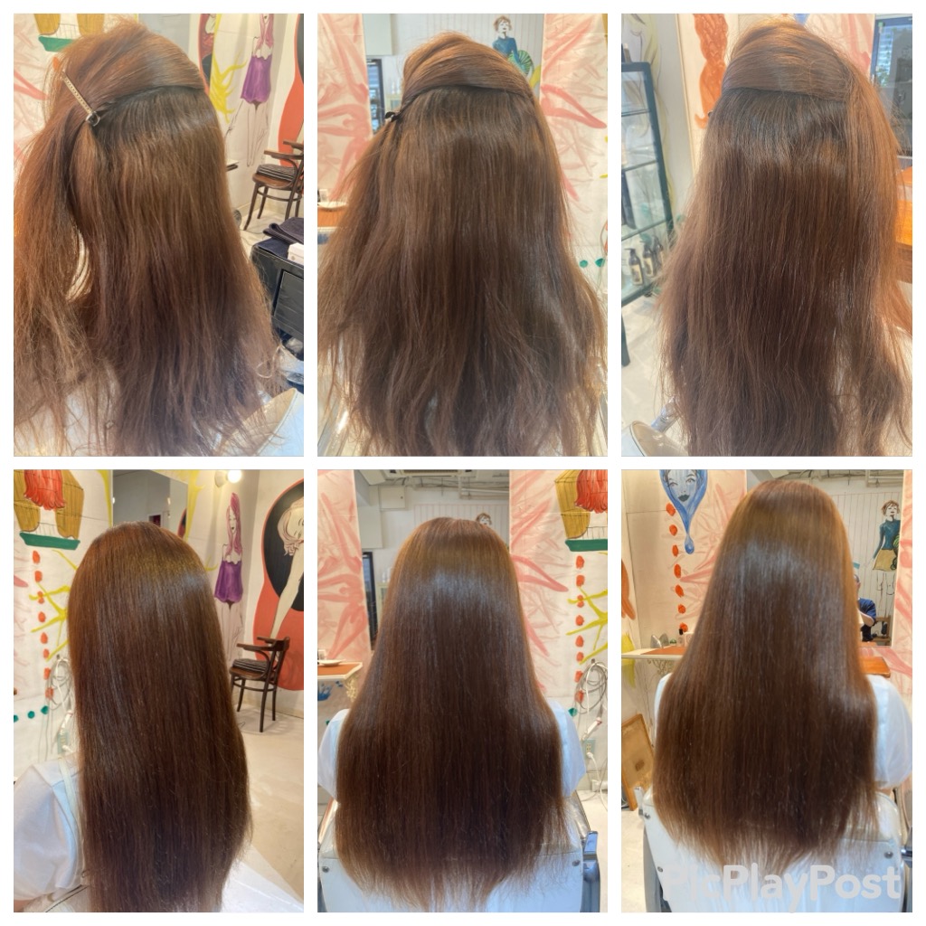 日本一優れた縮毛矯正薬剤をメインに使用した縮毛矯正の技術であり、髪を回復させる魔法の技術、薬剤を使用しているわけではありません。むしろ全国どこを探しても髪を回復させる技術、薬剤、商材は絶対に存在しません。お客様のダメージレベルによっては、一発で、もしくは段階的にキレイにできますが、傷んだ髪は絶対に回復しません。その事をしっかりご理解したうえでの御来店をお願いします。