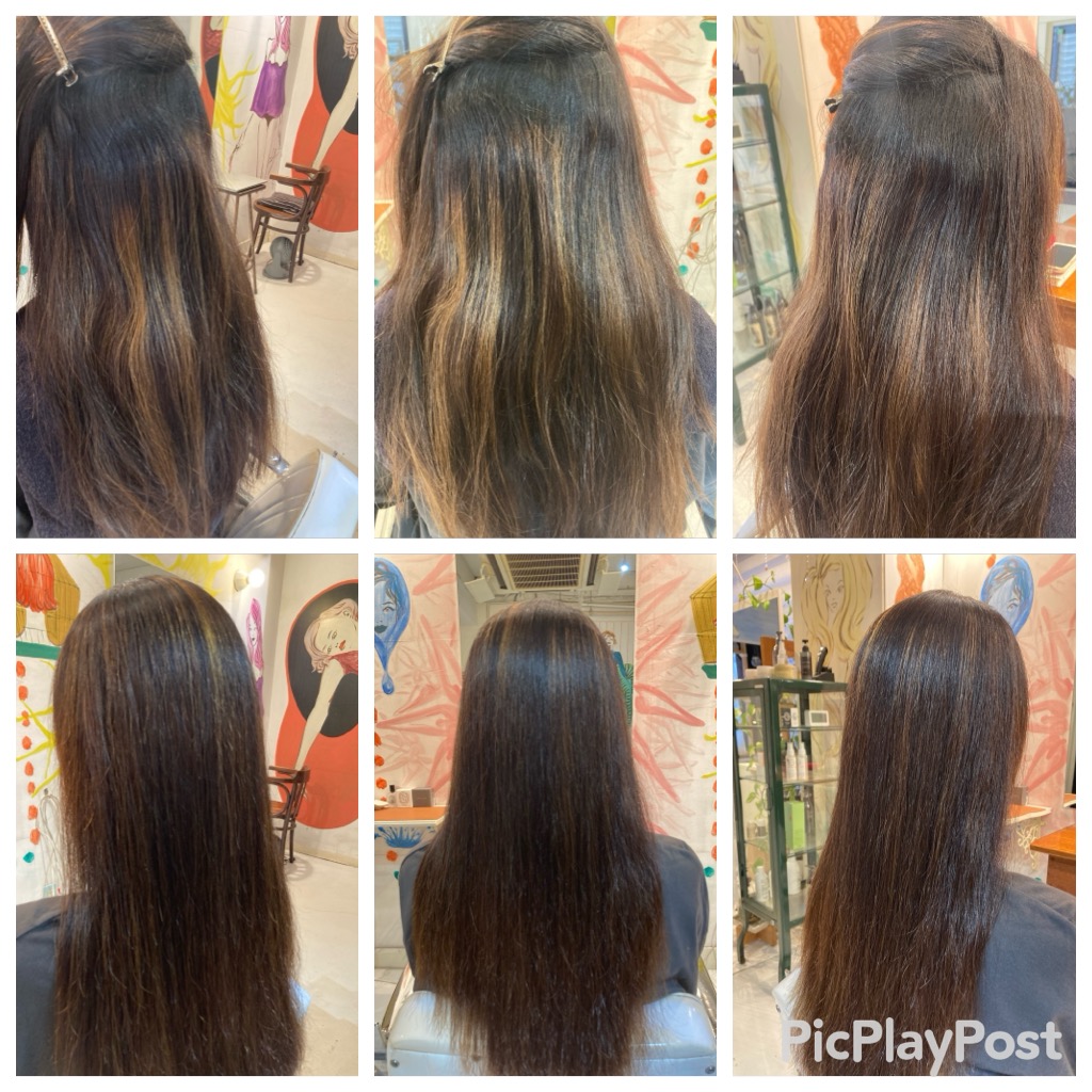 注意2=毛先のダメージ部分(すでにカラーや縮毛矯正など、薬剤が使用されている履歴がある方)は個人差があるため、仕上がりの保証ができませんが最善を尽くさせて頂きます。